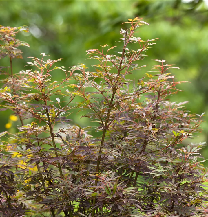 Fächerahorn 'Jerre Schwartz' ist ein mehrstämmig, schirmförmig wachsender, malerischer Großstrauch. Er erreicht gewöhnlich eine Höhe von 1,5 - 2 m und wird ca. 1,5 - 2 m breit.