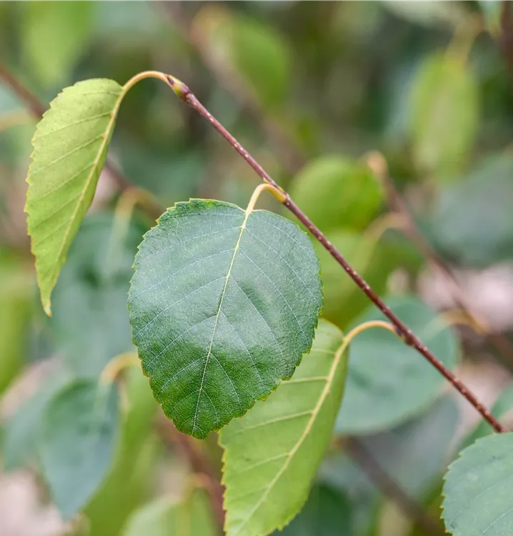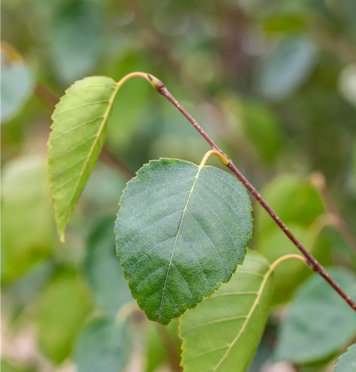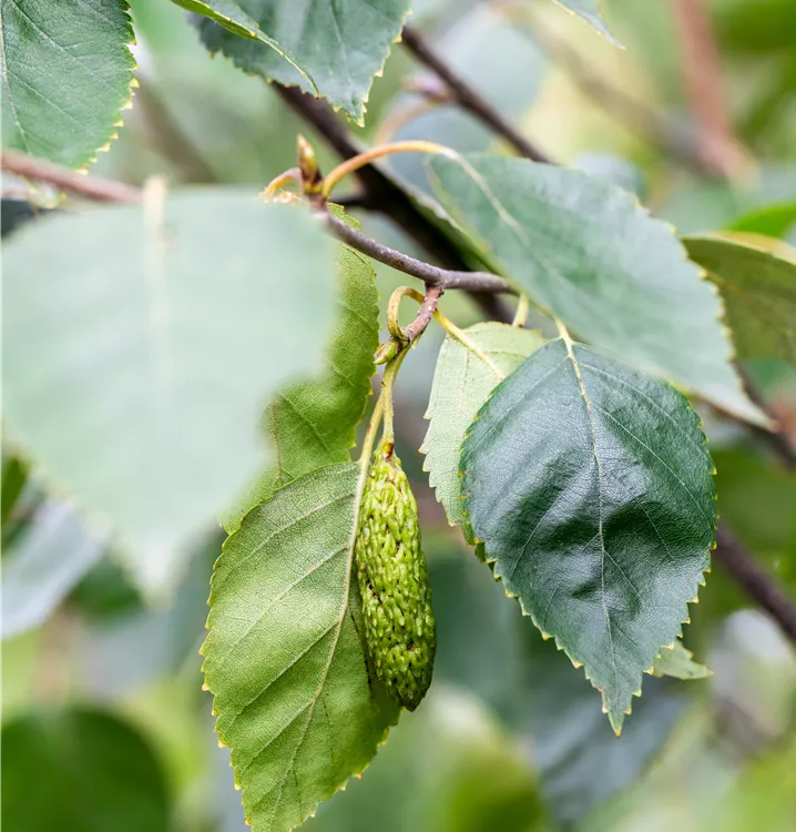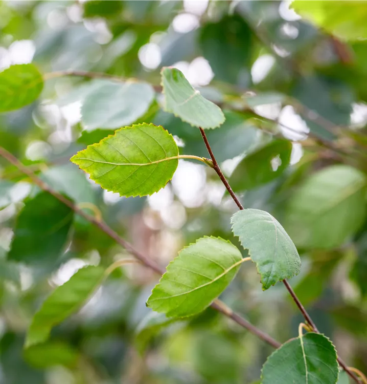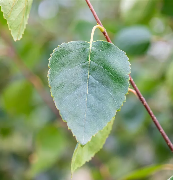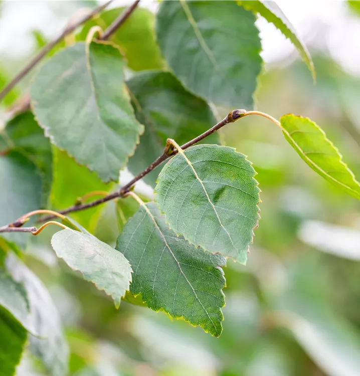 Die sommergrünen Blätter der Himalayabirke sind dunkelgrün, eiförmig, matt, gesägt. Himalayabirke zeigt sich leuchtend goldgelb im Herbst.