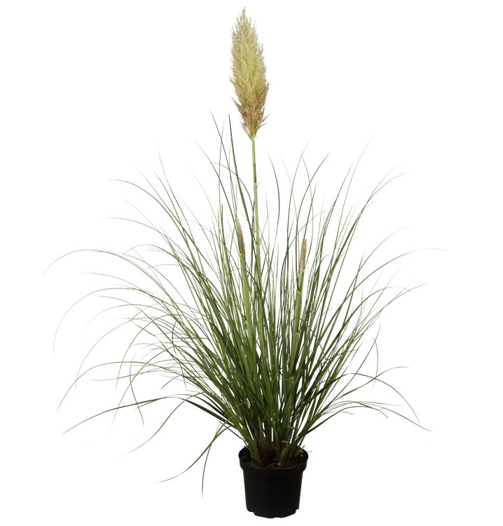 Das Pampasgras (Cortaderia selloana) ist mit seiner grau-grünen Blattfärbung ein dekoratives Gestaltungselement im Garten, welches ebenso mit seinem ausladenden Wuchs hervorsticht. Die weißen Blütenrispen schmücken diese Gras ab Herbst. An einem sonnigen Standort mit einem möglichst durchlässigen, humosen, nährstoffreichen Boden fühlt es sich am wohlsten. Bei günstigen Bedingungen erreicht dieses winterharte Gras eine Höhe von ca. 1,5 m und wird bis zu 1,5 m breit.