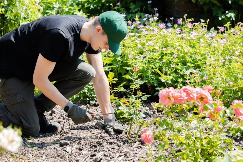 Wer bei der Pflanzung alles richtig macht, hat mit der anschließenden Pflege nur wenig zu tun. Denn Beetrosen pflanzen und danach pflegen ist mit nur wenig Aufwand verbunden. Nach der Pflanzung kommt es aber auf eine ausreichende Bewässerung an. Gerade in den ersten Wochen sollte man daher noch händisch nachhelfen und sicherstellen, dass die Erde um die Pflanzen nicht austrocknet. Danach ist nicht mehr viel Pflege angesagt. Verblühtes kann einfach immer wieder mit der Gartenschere entfernt werden. Winterschutz brauchen Beetrosen nur im ersten Standjahr, wenn es besonders kalt werden soll. Ansonsten sind die Beetschönheiten robust und winterhart. Vier Wochen nach der Pflanzung kann man Rosen mit einem speziellen Rosendünger düngen, im Herbst sollte man aber darauf verzichten. Wer Beetrosen pflanzen möchte, kann sich mit Lavendel, Schleierkraut, Ginster und Lupinen auch gleichzeitig die passenden Nachbarn in den Garten holen.
