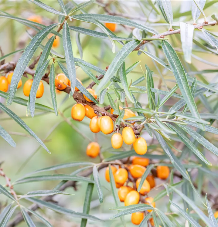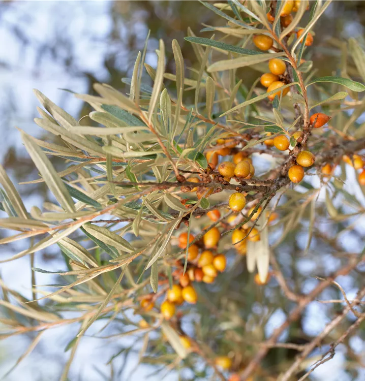 Der Sanddorn, weiblich 'Leikora' weist eine gute Frosthärte auf.