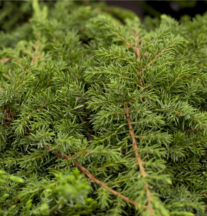 Der Kriechwacholder 'Green Carpet' ist immergrün. Seine Nadeln sind dunkelgrün, stechend.