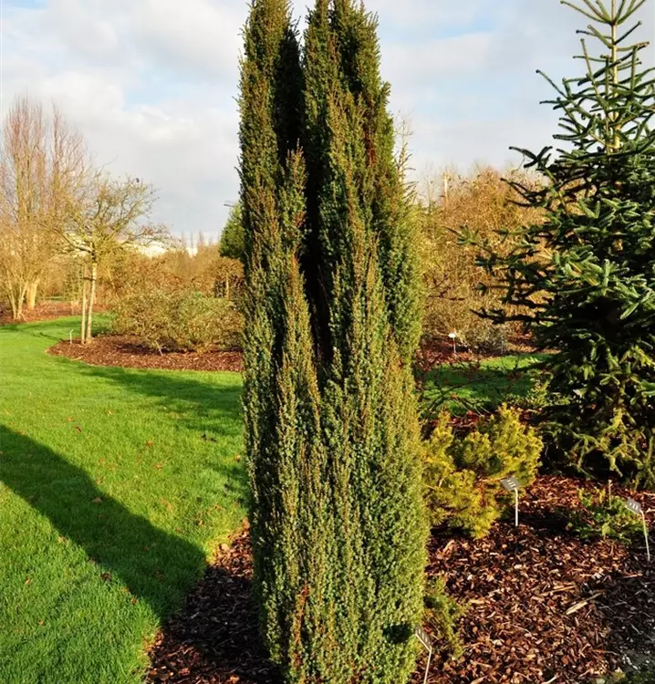 Wacholder 'Sentinel' ist ein säulenförmig und dicht wachsender Großstrauch oder Kleinbaum. Er erreicht gewöhnlich eine Höhe von 2 - 3 m und wird ca. 60 - 80 cm breit. Langsam wachsend. In der Regel wächst er 10 - 15 cm pro Jahr.