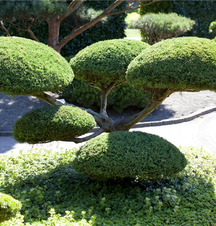 Chinesischer Wacholder 'Hetzii' ist ein ausladend wachsender, malerischer Großstrauch. Er erreicht gewöhnlich eine Höhe von 3 - 5 m und wird ca. 3 - 5 m breit. In der Regel wächst er 20 - 25 cm pro Jahr.