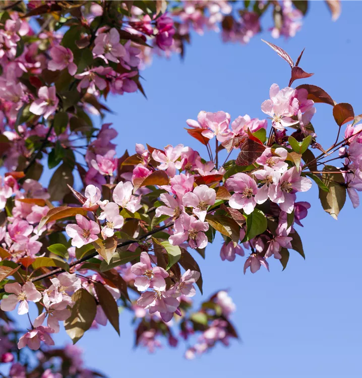 Zierapfel ist ein breit wachsender, malerischer Großstrauch. Er erreicht gewöhnlich eine Höhe von 4 - 8 m und wird ca. 4 - 6 m breit. In der Regel wächst er 30 - 40 cm pro Jahr.
