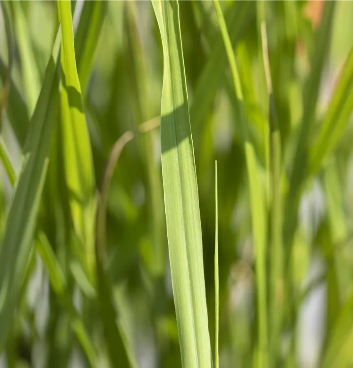 Hoher Blattschmuckwert. Die sommergrünen Blätter des Garten-Zebraschilfs 'Strictus' sind gelb-grün, lineal.
