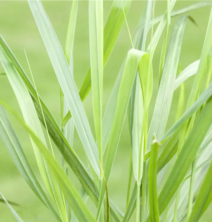 Die sommergrünen Blätter der Garten-Ruten-Hirse 'Rotstrahlbusch' sind rot-braun, lineal. Garten-Ruten-Hirse 'Rotstrahlbusch' zeigt sich leuchtend gelb-braun im Herbst.