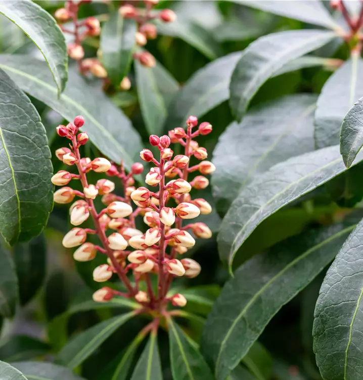 Pieris japonica 'Valley Rose' ist ein Flachwurzler und bildet, je nach Boden, fein verzweigte Wurzeln.