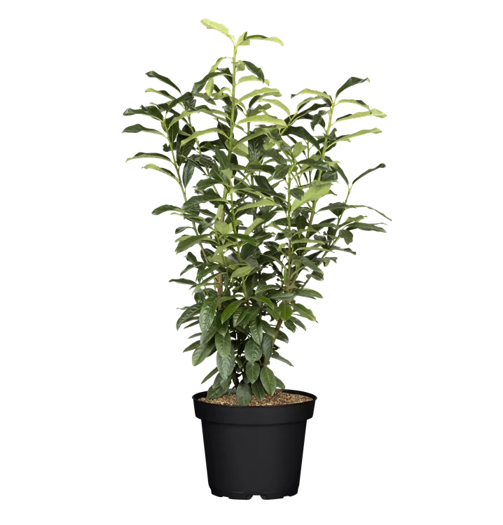 Lorbeerkirsche 'Genolia'® ist ein dicht und säulenförmig wachsender Großstrauch. Sie erreicht gewöhnlich eine Höhe von 2,5 - 4 m und wird ca. 0,6 - 1 m breit. In der Regel wächst sie 10 - 40 cm pro Jahr.