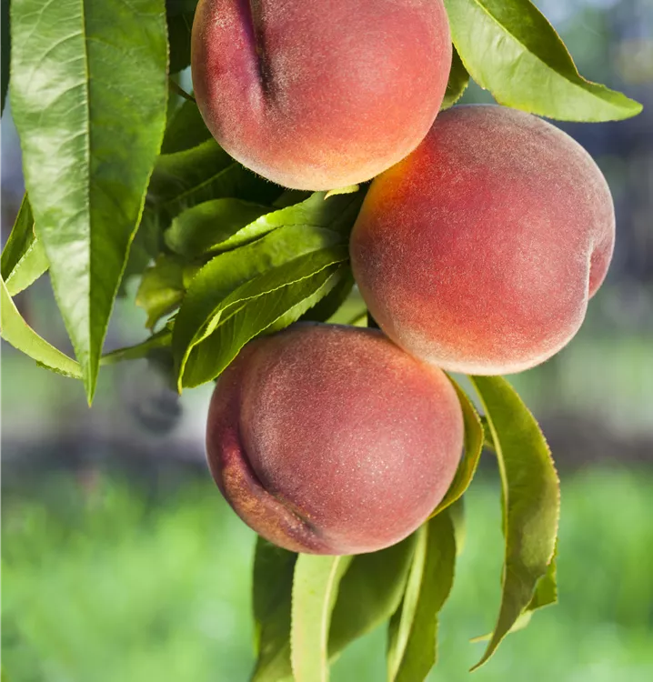 Pfirsich 'Benedicte' ist ein breit wachsender Kleinbaum. Er erreicht gewöhnlich eine Höhe von 3 - 5 m und wird ca. 3 - 4 m breit.