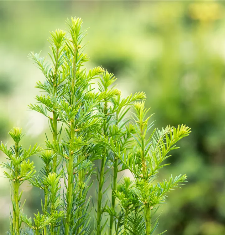 Die Säuleneibe 'Fastigiata' ist immergrün. Ihre Nadeln sind dunkelgrün.