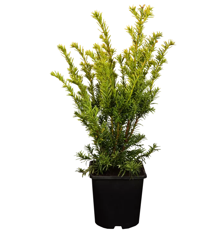 Sehr dekorativ. Die Goldene Straucheibe 'Semperaurea' ist immergrün. Ihre Nadeln sind grüngelb. Goldgelber Austrieb.