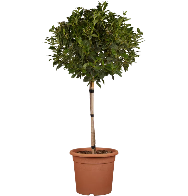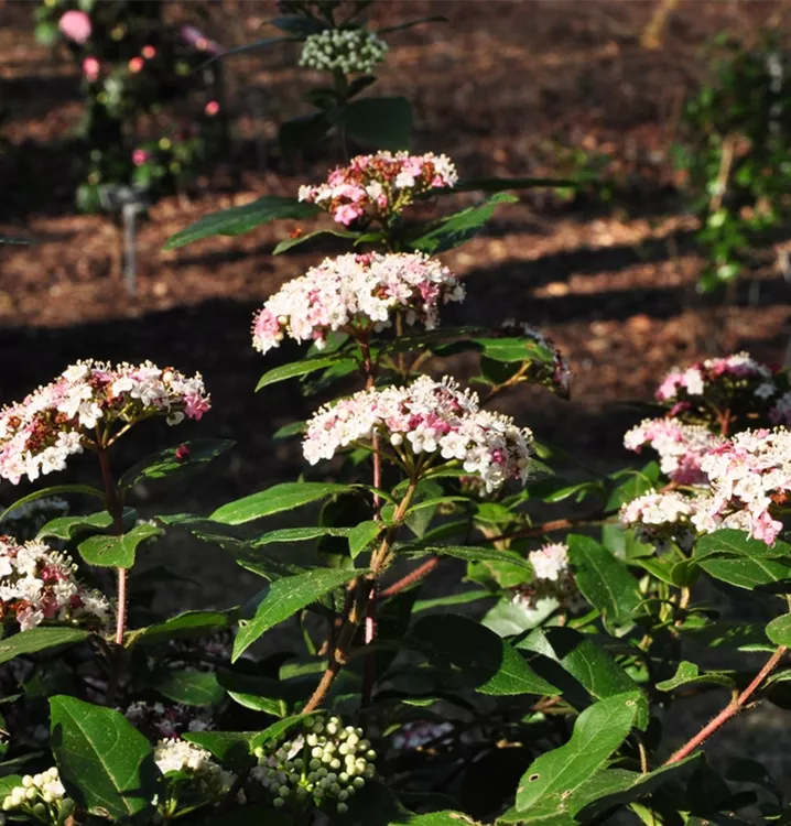 Viburnum tinus 'Eve Price' ist ein Flachwurzler.